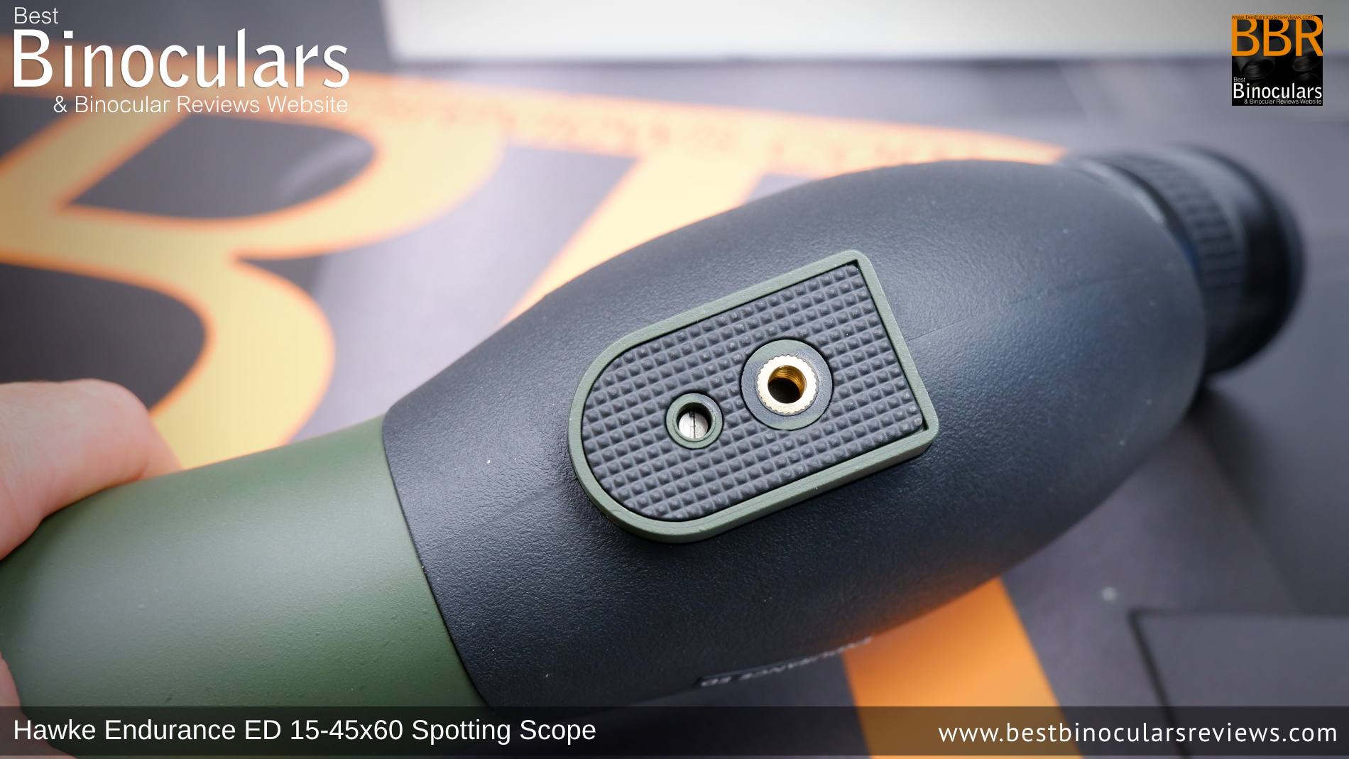 Measuring just 3cm wide and 5cm long, the foot/mounting plate on the Hawke Endurance ED 15-45x60 Spotting Scope is relatively small for a spotting scope, but for such a small instrument, I found it to be perfectly adequate and never had an issue with movement or slipping even when adding extra weight whilst digiscoping.
